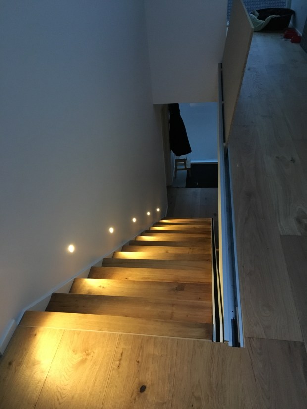Il primo punto, fondamentale, è la scelta dei punti luce,con accensione automatica, per il momento di percorrenza sia della scala che del corridoio.
