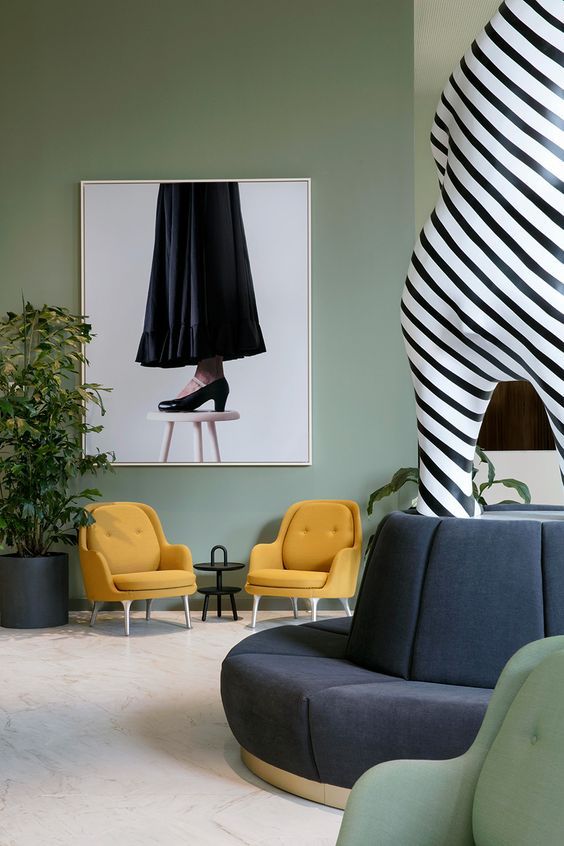 Lo consiglio perché questa tonalità si sposa bene con i toni caldi dell’autunno, ma è anche capace di rendere gli ambienti luminosi e positivi. Ad esempio vi propongo questa palette che contiene alcune nuance che si possono controbilanciare con il Tranquil Dawn.