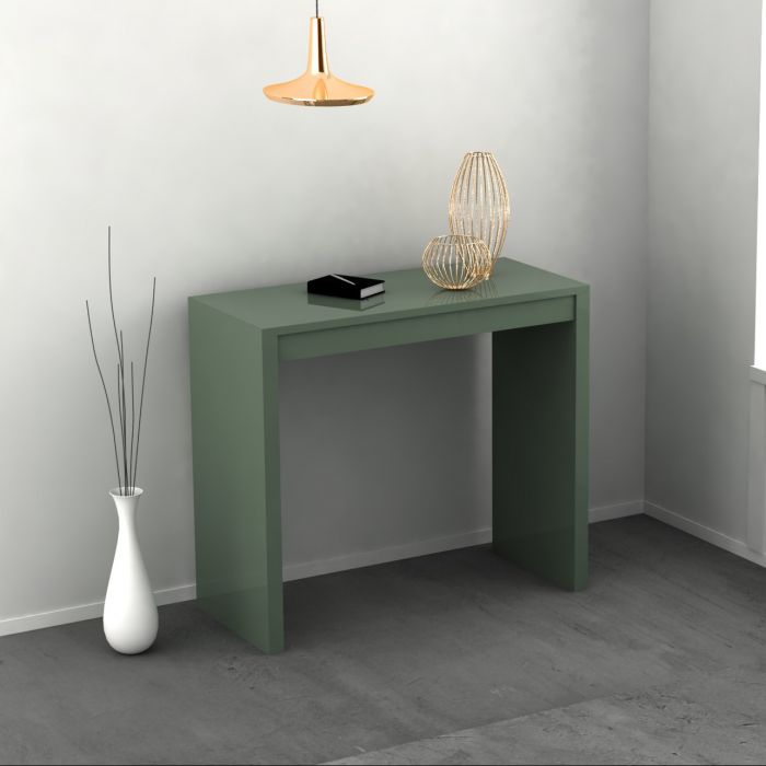 Una consolle di ridotte dimensioni, in mdf, che si trasforma in un comodo tavolo. Ottima soluzione per chi non possiede una zona pranzo ampia e spaziosa.