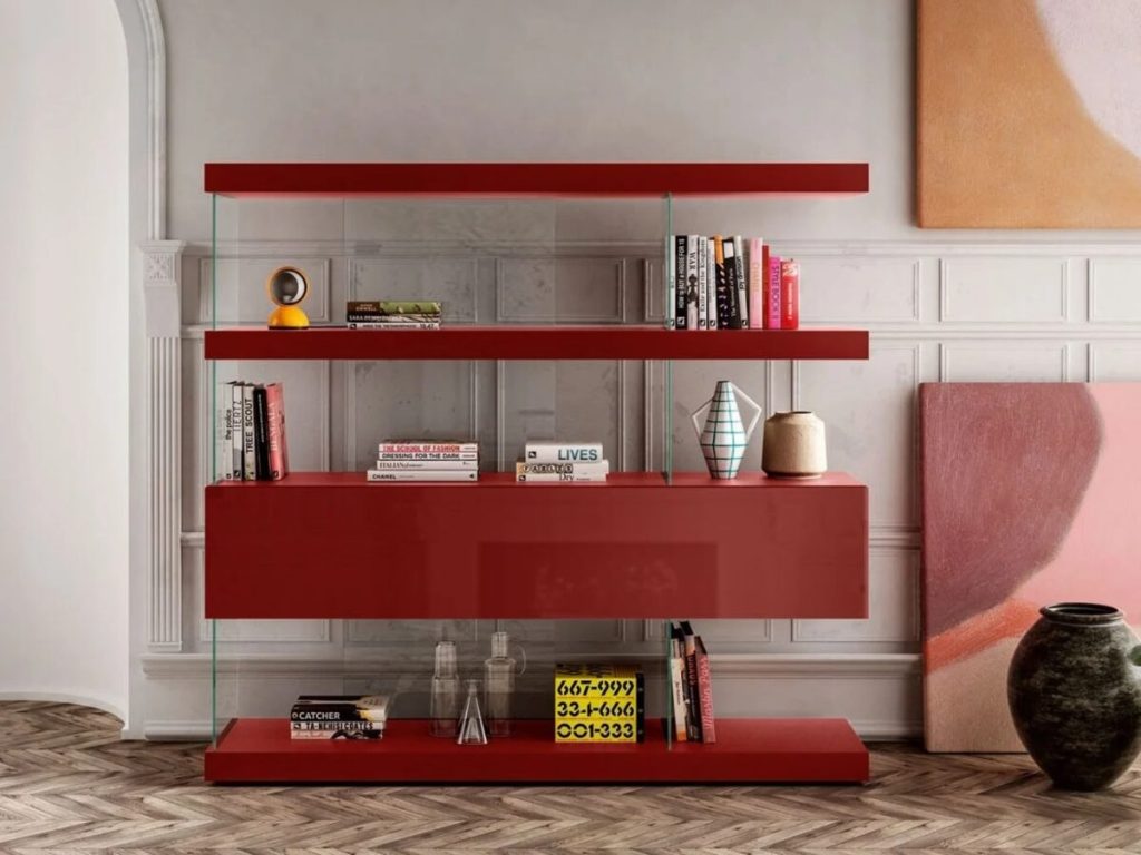Come tutti gli arredi Lago, si tratta di un complemento che rompe il rapporto, esaltandolo, tra pieni e vuoti. Sospesa su sostegni in vetro, la libreria Air sembra fluttuare nell’aria, sospesa, dando una sensazione di leggerezza ed eleganza. Le parti in vetro sono dei veri sostegni strutturali, mensole a forte spessore, degli elementi contenitore, con un sistema di fissaggio nascosto per dare stabilità e sicurezza alla struttura. Personalizzabile e autoportante, la libreria può diventare un vero elemento architettonico di divisione degli spazi.
