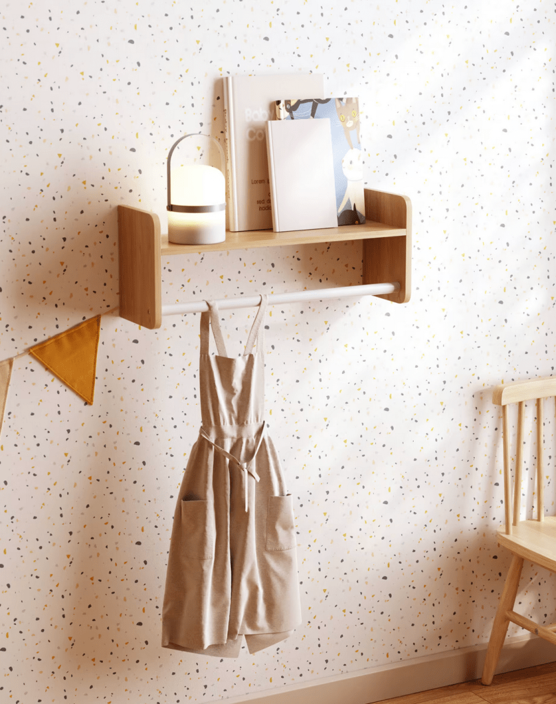 - Asta per appendere vestiti: un’asta bassa per appendere i vestiti permette al bambino di scegliere i propri vestiti e di vestirsi autonomamente.