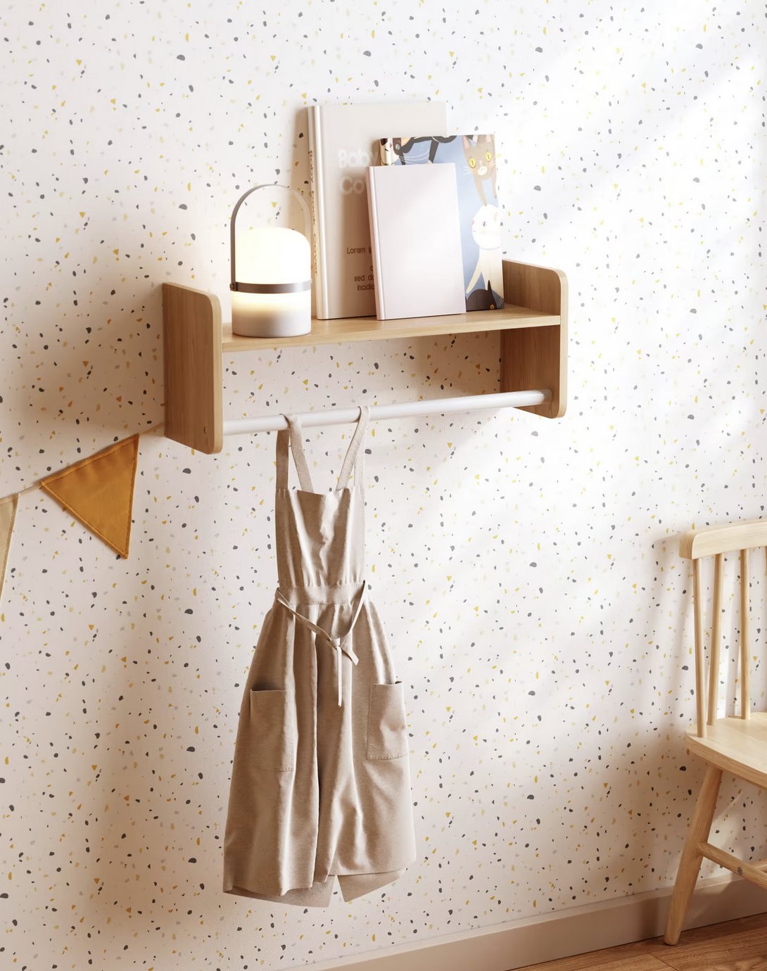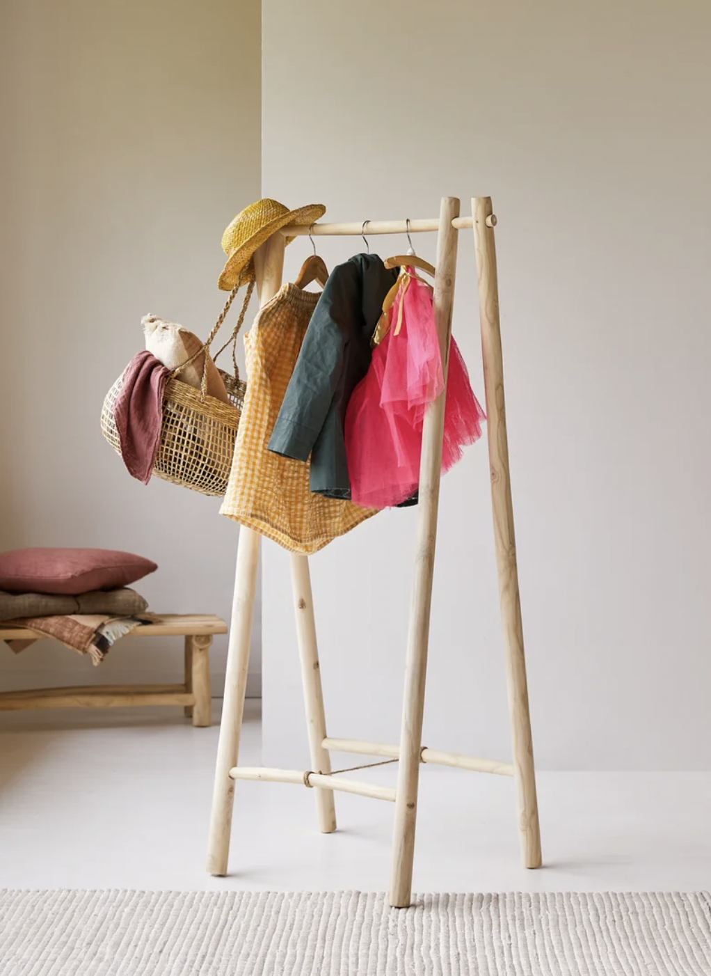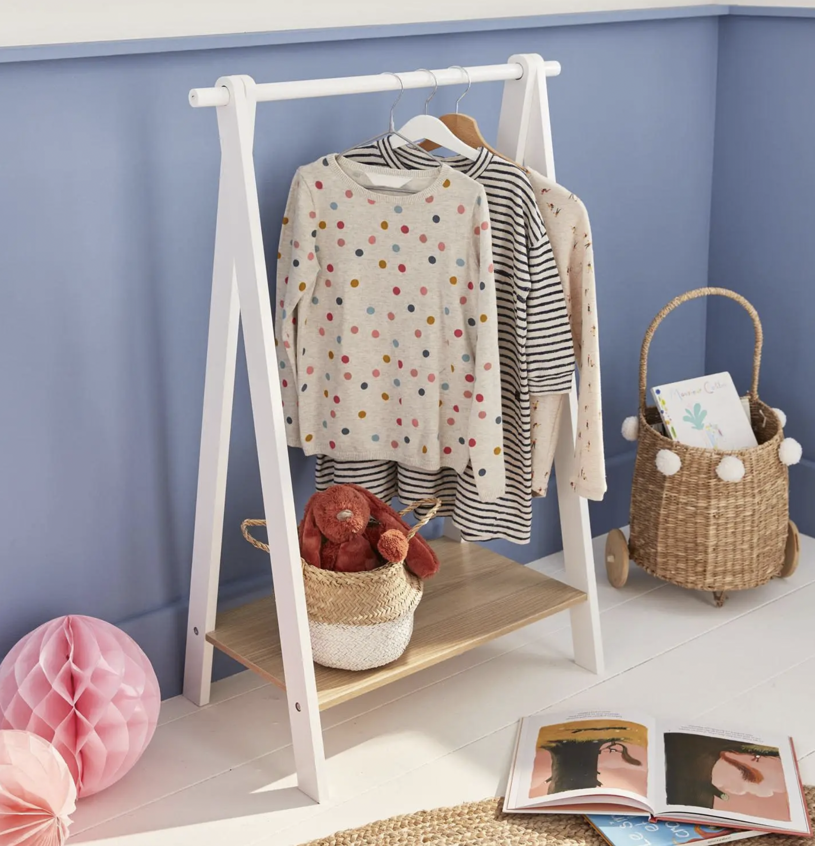 - Asta per appendere vestiti: un’asta bassa per appendere i vestiti permette al bambino di scegliere i propri vestiti e di vestirsi autonomamente.